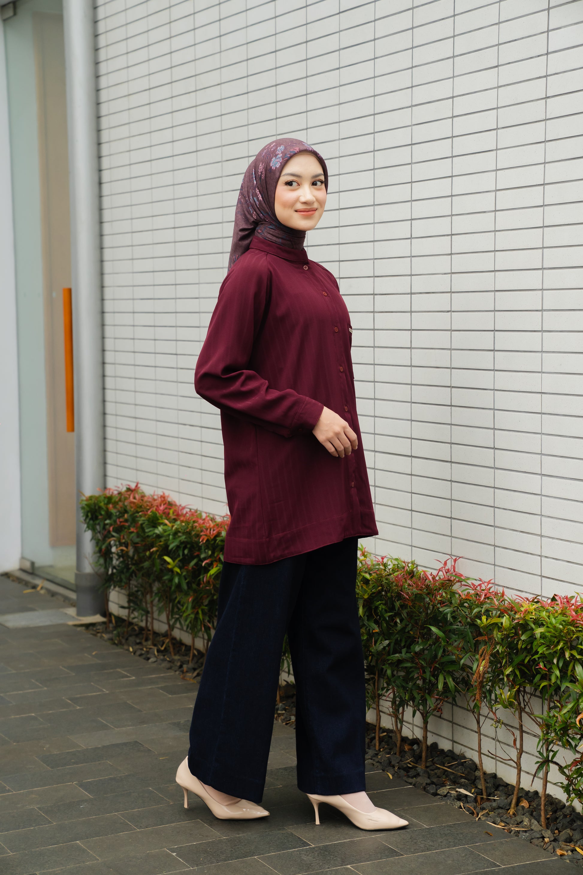 Alinia Shirt menampilkan motif garis vertikal yang memberi kesan tubuh lebih jenjang dan proporsional. Terbuat dari bahan Polar Cotton Anti Wrinkle yang ringan, adem, dan tidak mudah kusut, sehingga nyaman dipakai sepanjang hari.