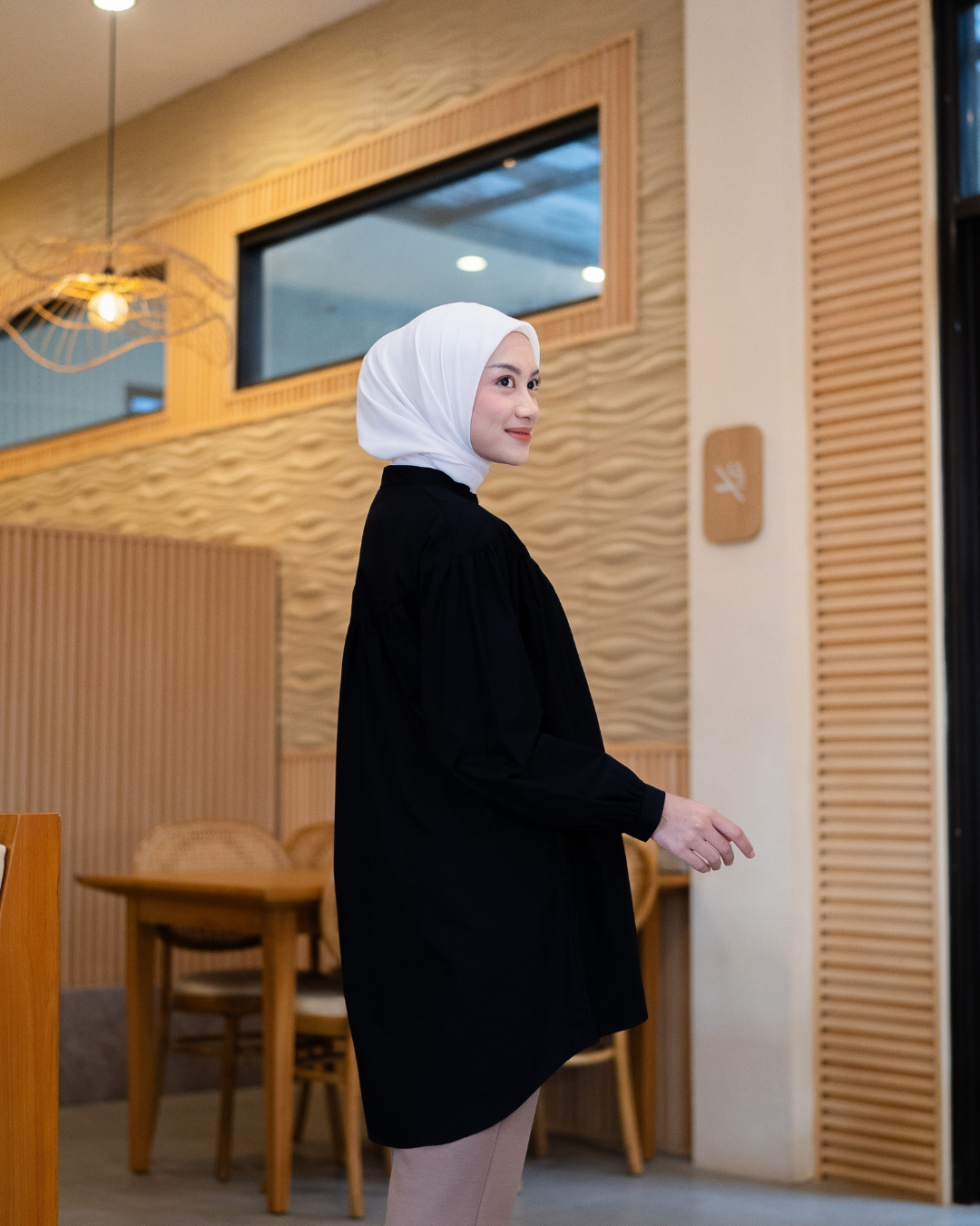 Carmia Shirt hadir dengan potongan dada berkerut yang menjadi keunikan desainnya — memberikan kesan feminin dan anggun. Terbuat dari bahan katun yang memiliki karakter agak kaku namun tetap nyaman, sehingga cocok digunakan untuk acara formal maupun aktivitas kerja sehari-hari.