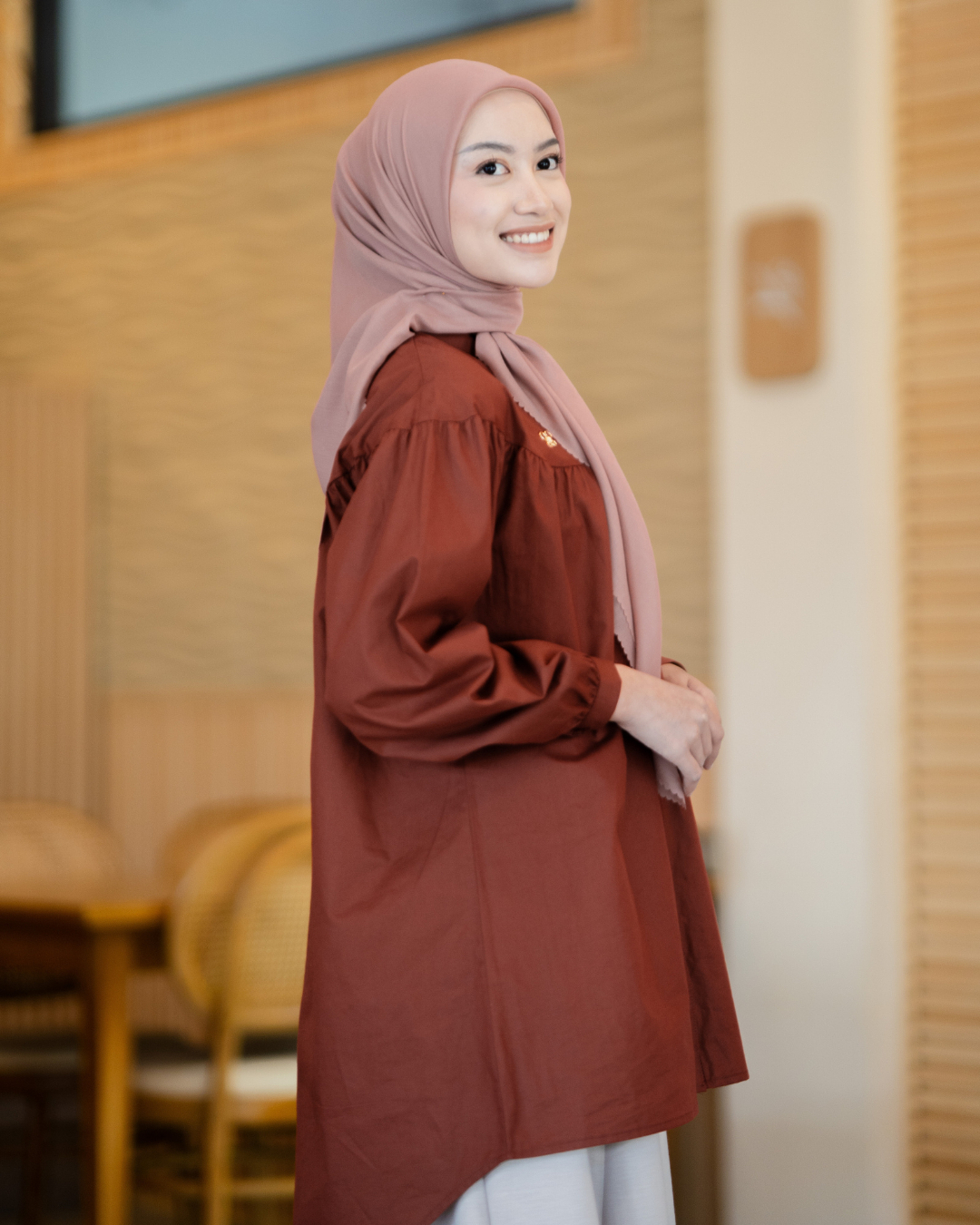 Carmia Shirt hadir dengan potongan dada berkerut yang menjadi keunikan desainnya — memberikan kesan feminin dan anggun. Terbuat dari bahan katun yang memiliki karakter agak kaku namun tetap nyaman, sehingga cocok digunakan untuk acara formal maupun aktivitas kerja sehari-hari.