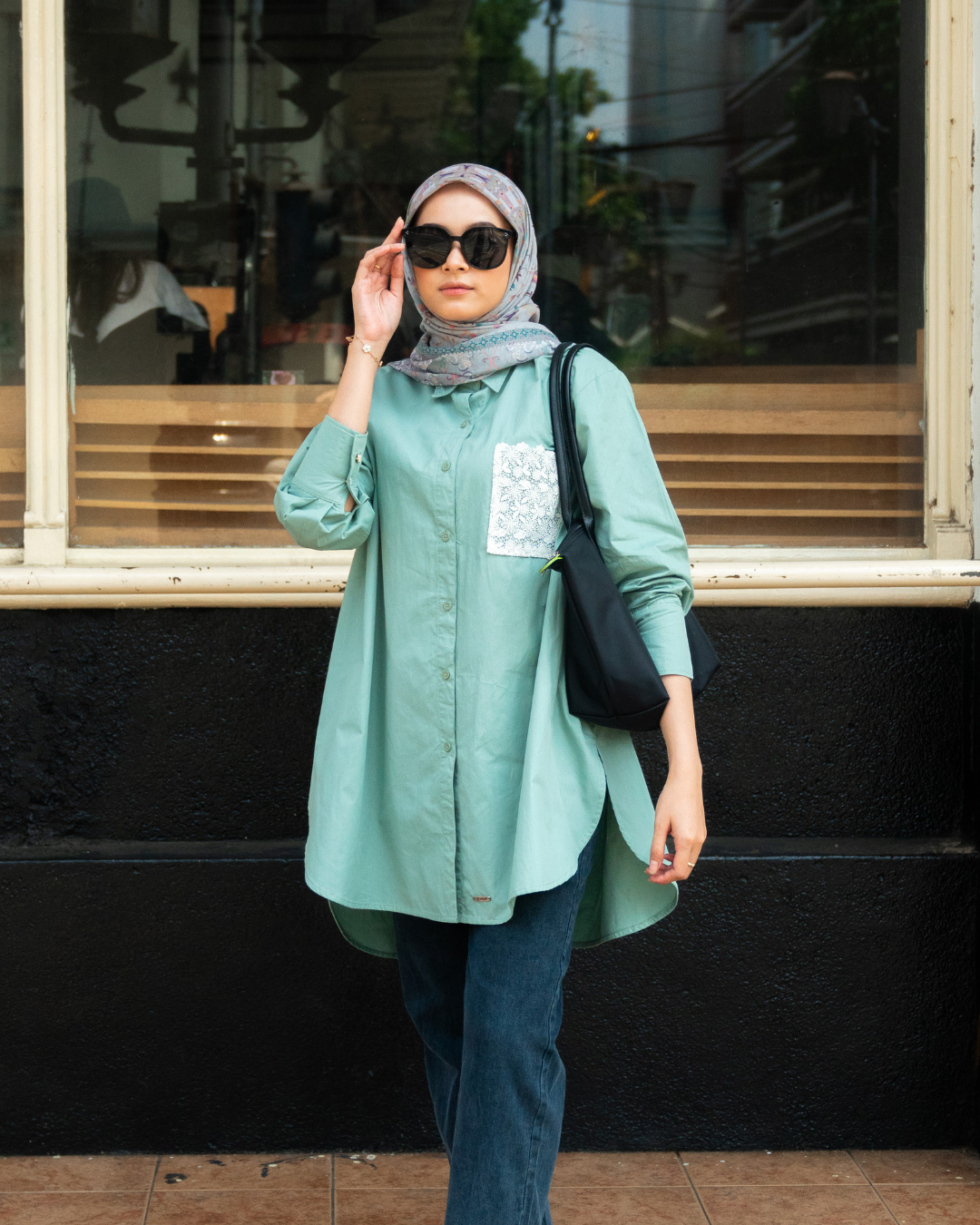 Daisy shirt dengan potongan oversize yang modis, kemeja ini memberikan ruang gerak yang ideal, nyaman untuk aktivitas kantor atau sehari-hari, momen santai bersama keluarga.