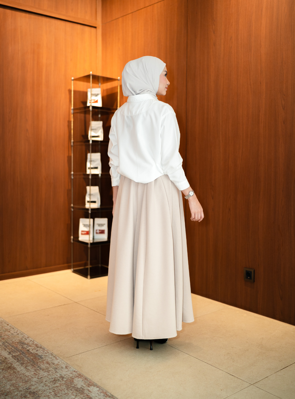 Elora Skirt adalah rok modest dengan potongan A-line semi flare yang memberikan siluet ramping tanpa terasa ketat. Didesain dengan model semi umbrella agar kamu bebas bergerak tanpa khawatir terserimpet.