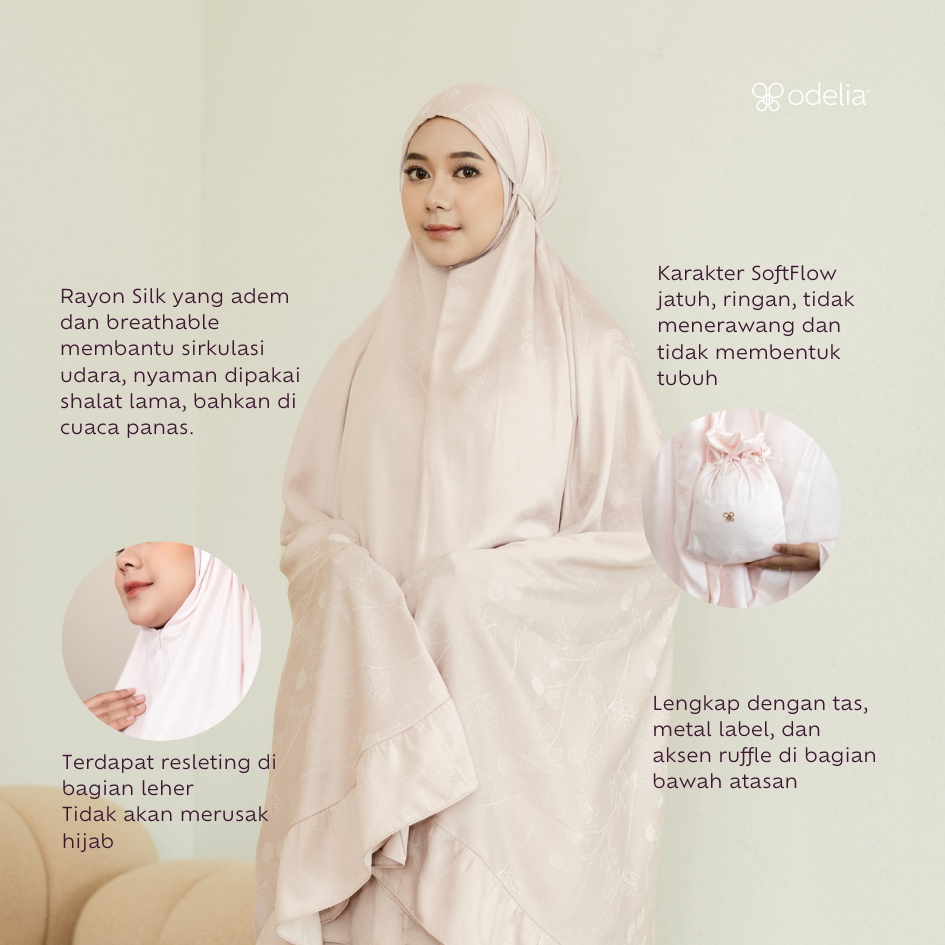 Desainnya dibuat longgar dengan siluet yang sopan dan menenangkan, memberikan ruang gerak yang lega serta rasa aman saat dikenakan. Tampilan rayon silk yang berkesan premium dipadukan dengan pilihan warna soft hingga bold yang elegan dan tidak berlebihan, sehingga tetap pantas tanpa mengalihkan fokus ibadah.