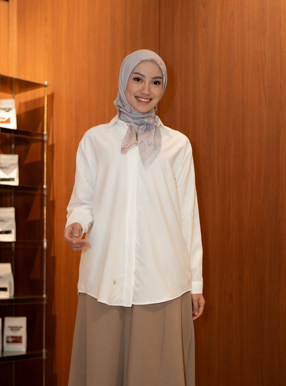 Didesain dengan kerah formal, kancing adjustable dan tersembunyi, serta detail metal label eksklusif yang menambah kesan premium. Ardelle Shirt menghadirkan nuansa profesional yang effortless — cocok untuk tampilan kerja maupun acara semi-formal.