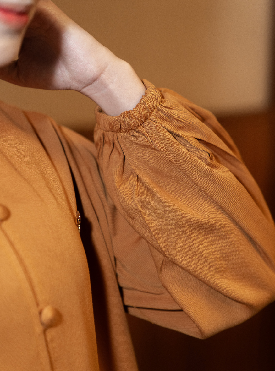 Potongan yang flattering, busui & wudhu friendly, serta desain minimalis yang versatile, menjadikannya pilihan ideal untuk acara formal maupun kasual. Simpel, mewah, dan timeless.