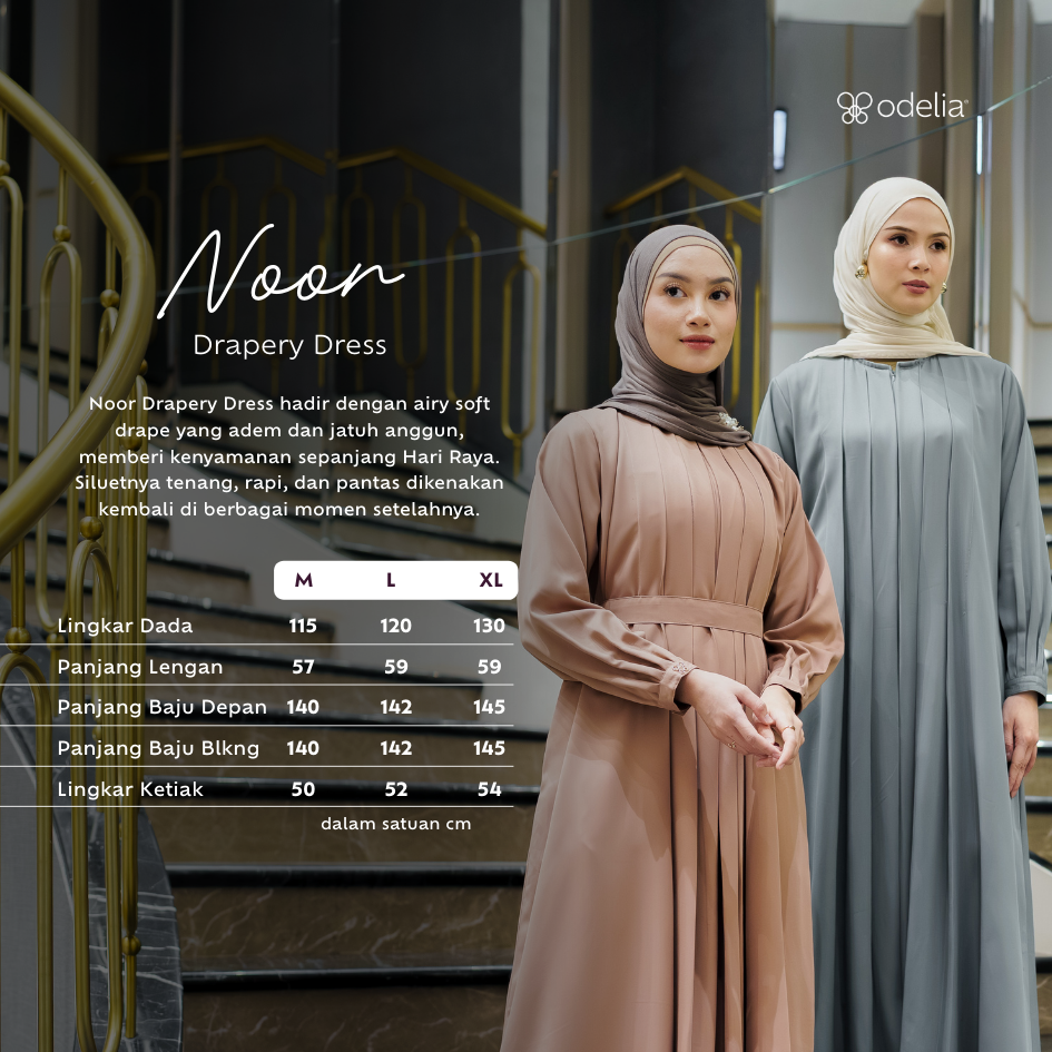 Noor Drapery Dress hadir dengan siluet anggun dan jatuh lembut yang memberikan kesan tenang, dewasa, dan elegan. Terbuat dari material airy soft drape yang terasa adem, ringan, dan breathable, nyaman dikenakan sepanjang hari di iklim tropis tanpa rasa gerah.